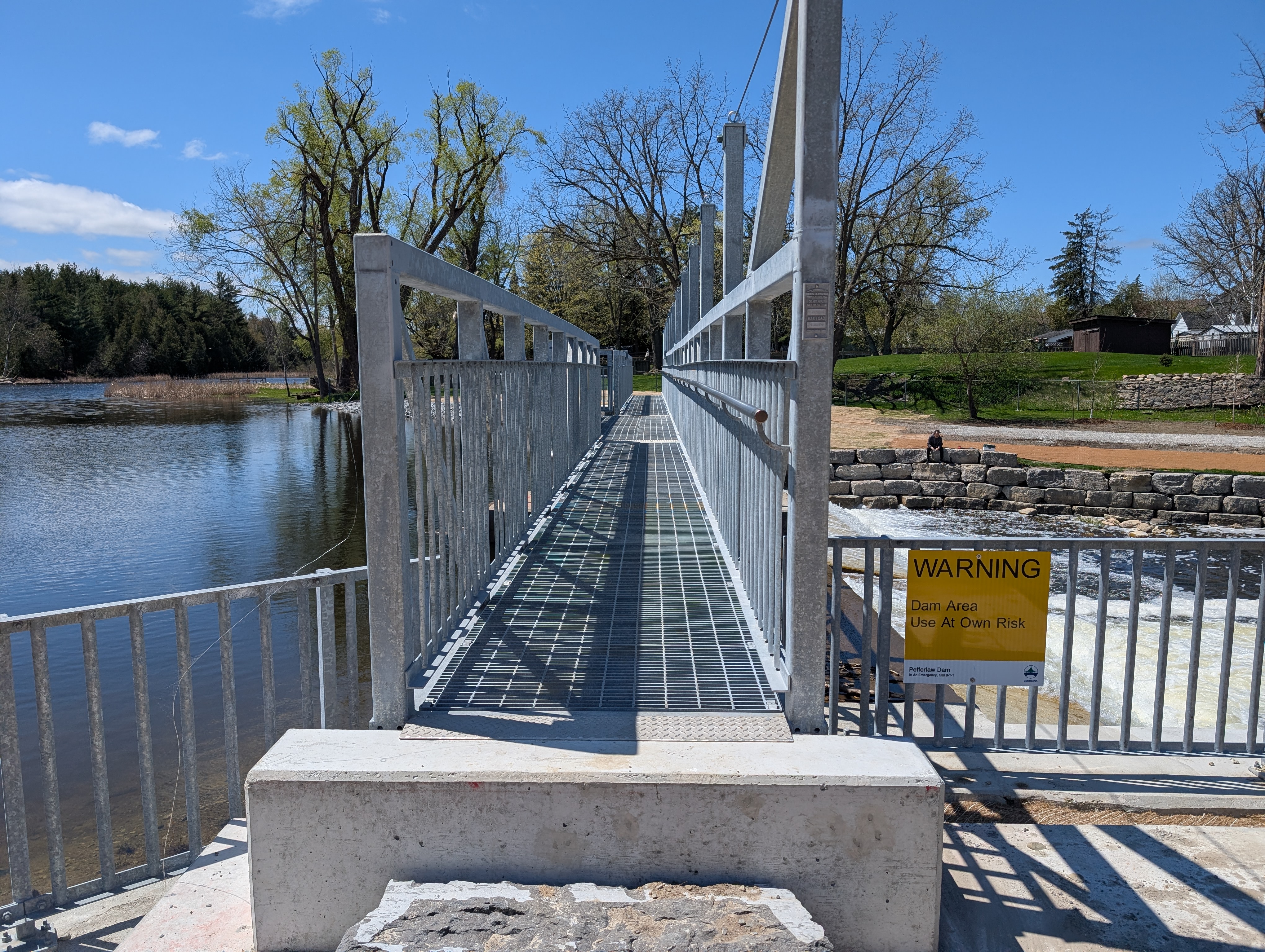 - Install public safety signs upstream of the dam, downstream of the dam and at the pedestrian bridge; and
